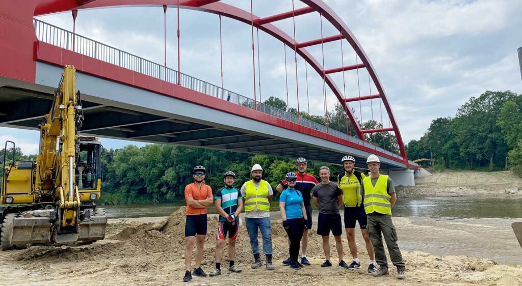 Zwieńczeniem spotkania był wyjątkowy przejazd – uczestnicy wycieczki utworzyli pierwszy peleton rowerowy, który oficjalnie przejechał po nowym moście. To symboliczne wydarzenie połączyło sportową pasję, integrację środowiska mostowców i dumę z osiągnięć polskiej inżynierii mostowej.