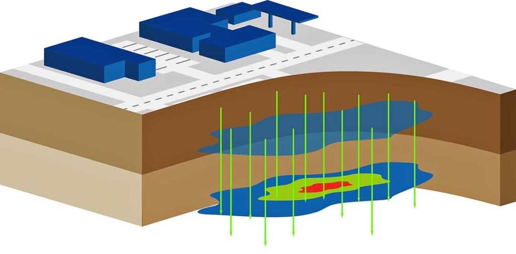 Gęsta siatka odwiertów, budowa geologiczna i zanieczyszczenie