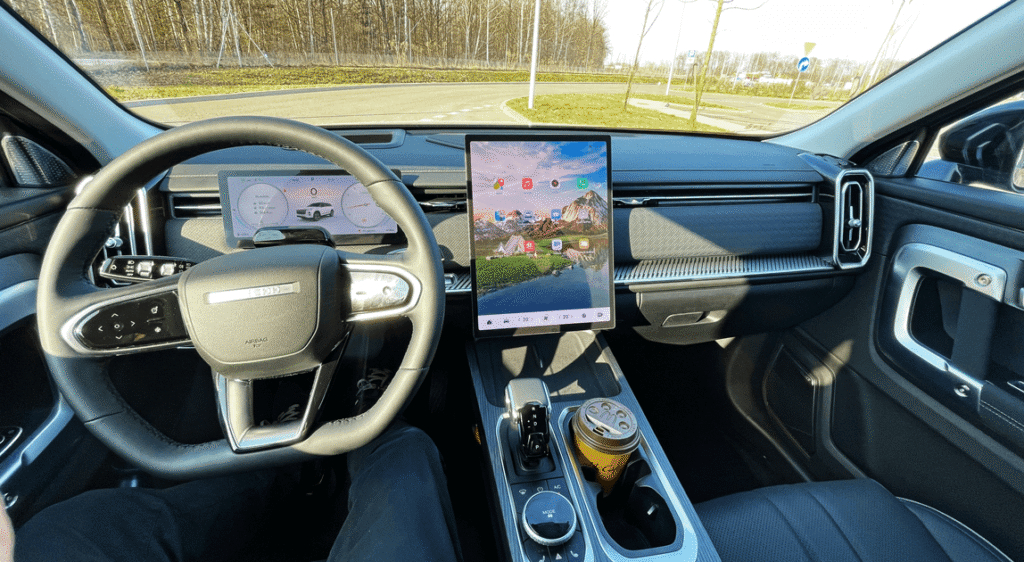- ogromny pionowy monitor na środku kokpitu, z rewelacyjną widocznością nawigacji i kamer 360°