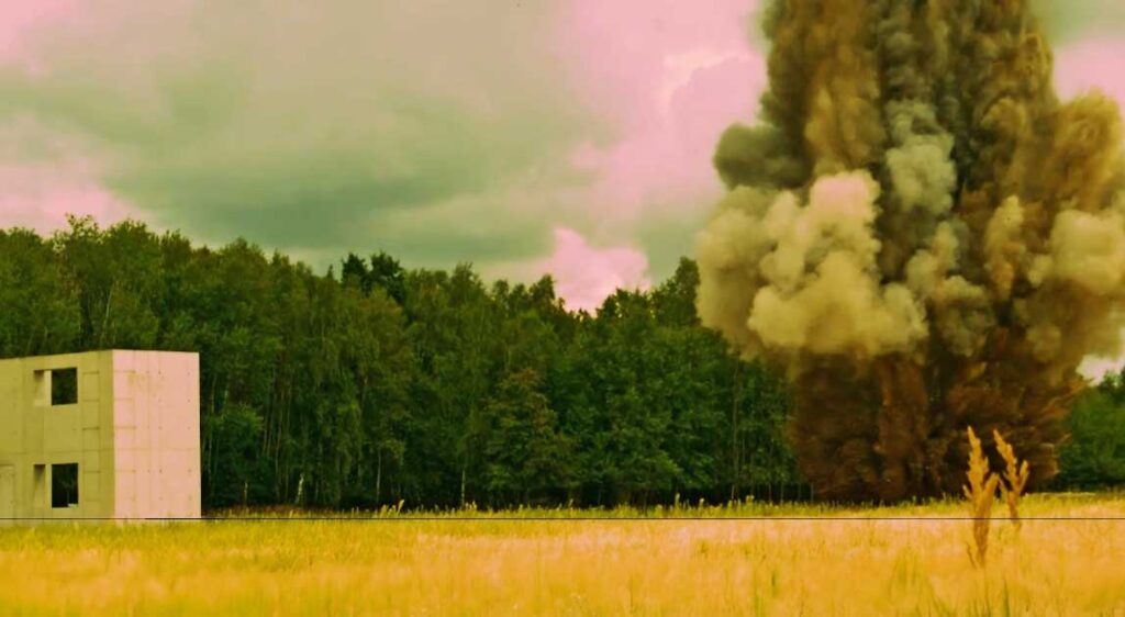 Doświadczenia te stały się impulsem do opracowania schronów na bazie rur polietylenowych [12]. W ramach badań przeprowadzono testy z użyciem ładunków wybuchowych o masie 10 kg TNT, detonowanych zarówno na powierzchni, jak i w gruncie w bezpośrednim sąsiedztwie konstrukcji (ryc. 5). Schron z rury PE Weholite, zainstalowany ponad metr pod ziemią, został poddany analizie odporności na złożone oddziaływanie fal uderzeniowych w gruncie (ang. shockwave loading), dynamiczne parcie gruntu oraz odpowiedź wewnątrz, np. przyspieszenia, deformacje konstrukcji oraz poziom hermetyzacji w czasie rzeczywistym.