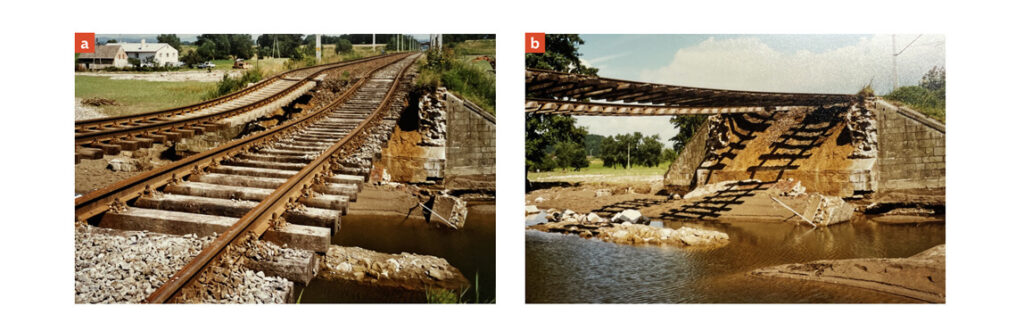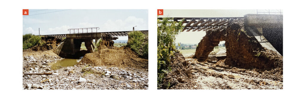 Wzrost liczby oraz skali powodzi, susz i innych zjawisk pogodowych stanowi obecnie realne zagrożenie dla istniejących oraz nowo budowanych mostów, dróg i linii kolejowych. W wyniku działania omawianych negatywnych czynników następuje często w sposób niekontrolowany degradacja dróg kołowych i kolejowych, erozja podpór mostowych, podmycia fundamentów oraz deformacja geometryczna obiektów (ryc. 1 i 2).