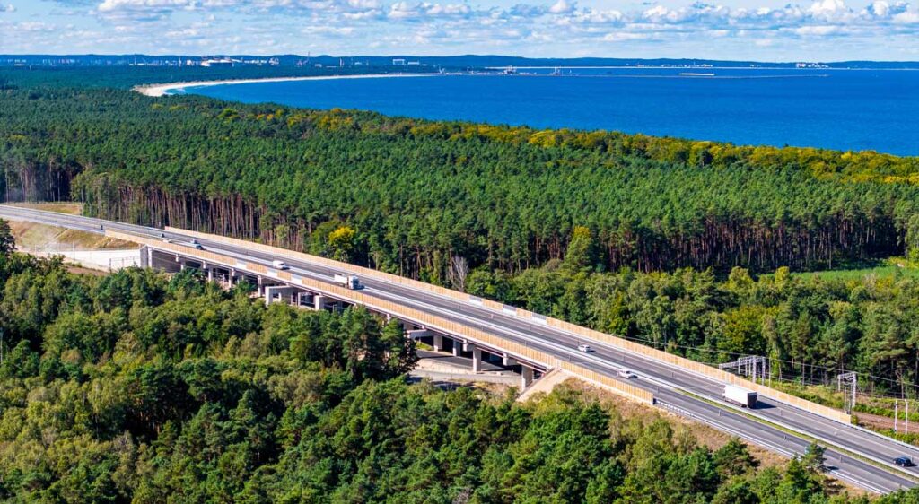 Udostępnienie do ruchu odcinka drogi S3 od węzła Świnoujście Łunowo do węzła Międzyzdroje domknęło całą trasę ekspresową z wybrzeża Bałtyku do granicy z Czechami w Lubawce. Liczący 33 km fragment między Świnoujściem a Troszynem, zrealizowany przez firmy Polaqua i PORR, był ostatnim brakującym ogniwem drogi S3. Inwestycja kosztowała 1,76 mld zł, z czego ponad 757 mln zł pochodziło z Funduszy Europejskich na Infrastrukturę, Klimat i Środowisko (FEnIKS). Prace trwały od 2022 r., a etapowe uruchamianie trasy zakończono w październiku 2025 r. S3 biegnie w większości po śladzie dawnej DK3, łącząc Świnoujście z Lubawką i tworząc pierwsze w pełni ekspresowe połączenie północ – południe w Polsce, kluczowe dla rozwoju portów i tranzytu międzynarodowego.