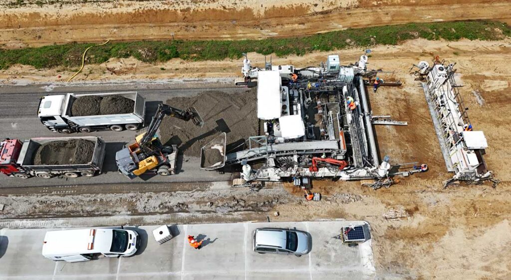 W materiałach betonowych także obserwuje się zmiany – producenci zaczynają wdrażać spoiwa o obniżonym śladzie węglowym i korzystać z surowców z recyklingu. Przykładem jest betonowa nawierzchnia na autostradzie A2, opracowana przez STRABAG i Cement Ożarów, w której wykorzystano cement o niższym śladzie węglowym i zoptymalizowaną recepturę betonu. Rozwiązanie to spowodowało zmniejszenie emisji CO2 nawet o 40% w porównaniu z tradycyjnymi konstrukcjami nawierzchni betonowych.