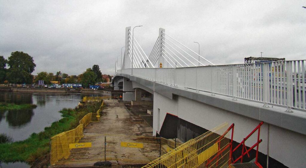 (POPDOW), współfinansowanego przez Bank Światowy, Fundusz Spójności i budżet państwa. Nowa przeprawa, dostosowana do ruchu samochodowego i pieszo-rowerowego, umożliwia bezpieczne prowadzenie zimowych działań lodołamania oraz zwiększa ochronę przeciwpowodziową regionu. Inwestycja obejmowała również rozbudowę ul. gen. Władysława Sikorskiego i przebudowę sieci infrastruktury technicznej, co pozwoliło na pełną modernizację lokalnego układu komunikacyjnego.