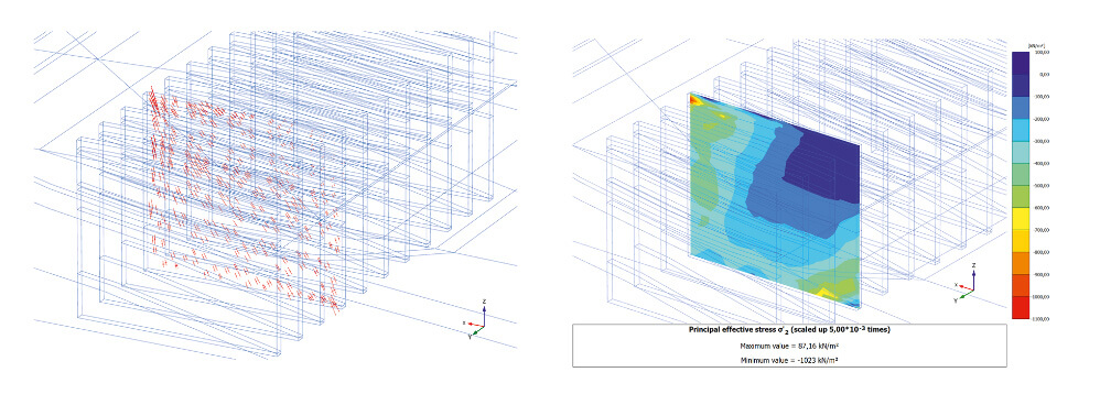 Rozwiązania projektowe zostały poparte zaawansowaną analizą numeryczną metodą elementów skończonych (MES), przeprowadzoną w środowisku Plaxis 3D.
