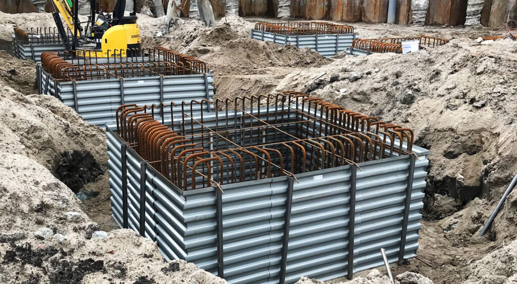 Technologia RECOSTAL sprawdza się szczególnie w projektach miejskich i przemysłowych, gdzie przestrzeń jest ograniczona, a fundamenty mają zróżnicowaną geometrię.