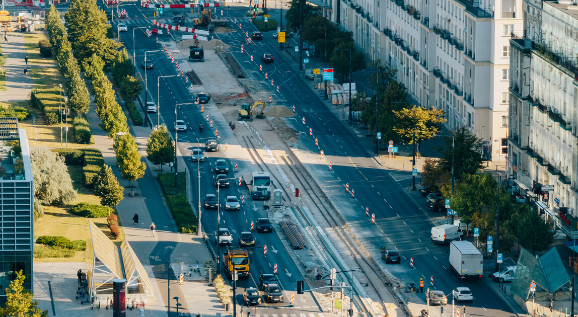 Rozbudowa torowiska tramwajowego na ul. Marszałkowskiej to jedna z kluczowych inwestycji komunikacyjnych stolicy. Projekt zakłada modernizację nawierzchni torowej, budowę zielonego torowiska oraz przebudowę przystanków i infrastruktury towarzyszącej. Prace prowadzone są równolegle na trzech odcinkach i obejmują zarówno roboty torowe, jak i instalacyjne oraz brukarskie.