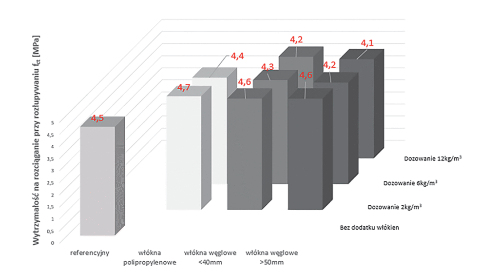 Na rycinie 5 przedstawiono wartości średnie wytrzymałości na rozciąganie przy rozłupywaniu wszystkich wykonanych próbek.