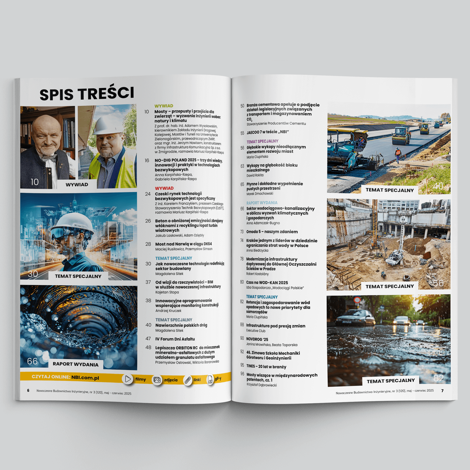 • Mosty – przepusty i przejścia dla zwierząt – wyzwania inżynierii wobec natury i klimatu. Z prof. dr. hab. inż. Adamem Wysokowskim, kierownikiem Zakładu Inżynierii Drogowej, Kolejowej, Mostów i Tuneli na Uniwersytecie Zielonogórskim, przewodniczącym ZMRP, oraz mgr. inż. Jerzym Howisem, konstruktorem z firmy Infrastruktura Komunikacyjna Sp. z o.o. w Żmigrodzie, rozmawia Mariusz Karpiński-Rzepa