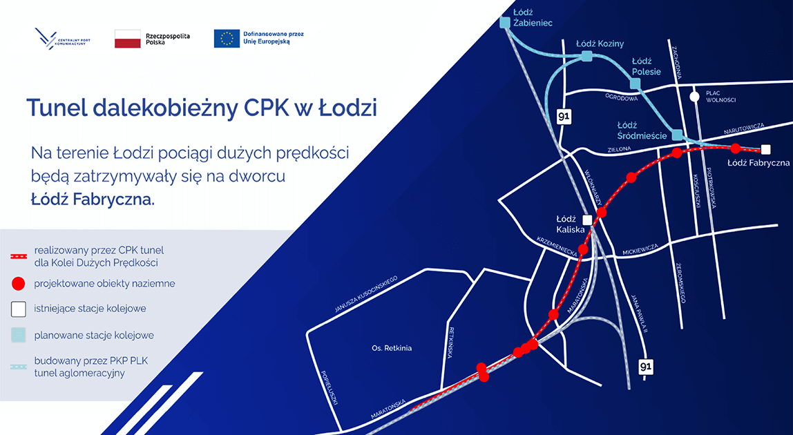 Tunel dalekobieżny CPK jest kluczowym elementem tzw. linii „Y”, czyli projektowanej trasy KDP między Warszawą, CPK, Łodzią, Wrocławiem i Poznaniem. Będzie on przebiegać przez centrum Łodzi – pod istniejącą, gęstą zabudową.