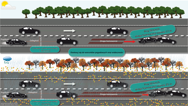 Pamiętajmy również o odpowiednim przygotowaniu pojazdu – sprawnych wycieraczkach, czystych reflektorach, a podczas jazdy o zachowaniu bezpiecznej odległości od poprzedzającego nas pojazdu.