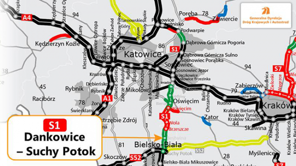 Wykonawcą odcinka S1 Dankowice – Suchy Potok o długości 12 km jest konsorcjum firm MIRBUD i PBDiM Kobylarnia. Wartość kontraktu to 586,7 mln zł. Inwestycja będzie realizowana w systemie projektuj i buduj w latach 2020-2023.