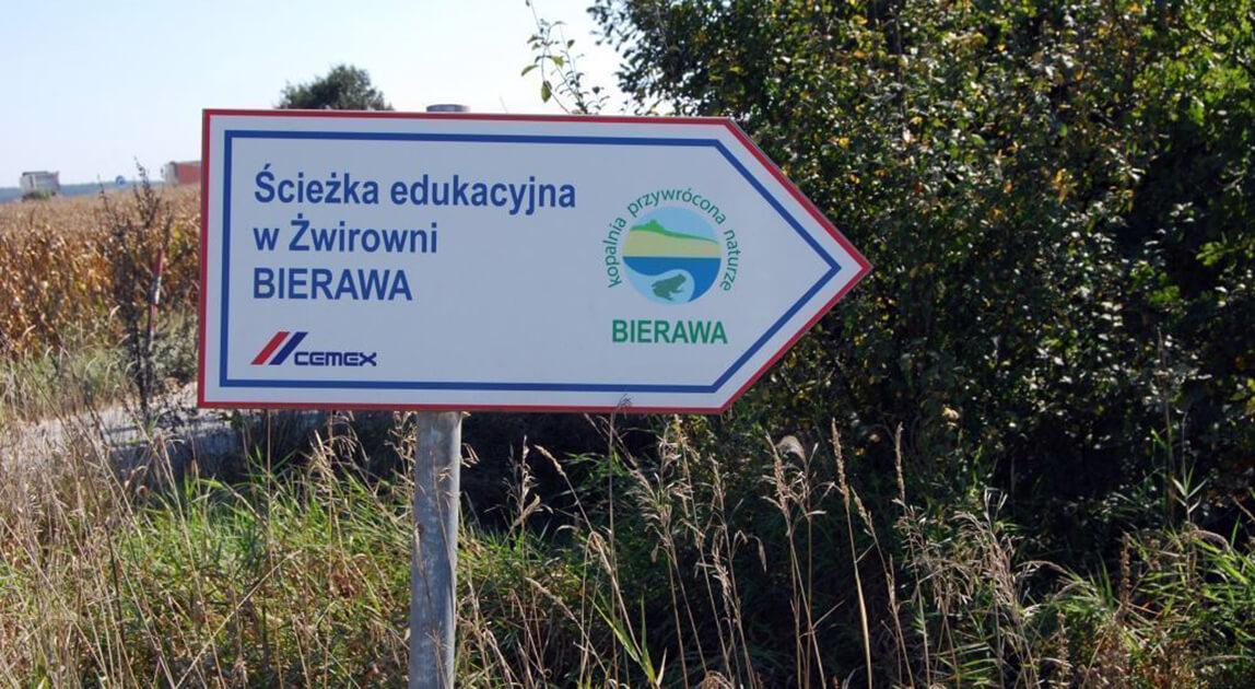Zlokalizowana na terenie dawnej żwirowni, ścieżka edukacyjna „Bierawa – kopalnia przywrócona naturze” to efekt rekultywacji przeprowadzonej przez firmę Cemex Polska. Projekt zrealizowany we współpracy z Uniwersytetem im. Jana Długosza w Częstochowie został uruchomiony w 2017 roku. Od tego czasu miejsce to służy jako przestrzeń do edukacji ekologicznej, rekreacji oraz promocji bioróżnorodności.