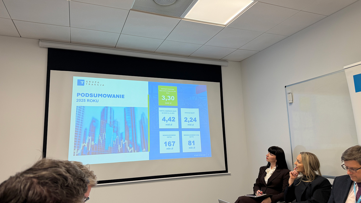 Trakcja S.A. zakończyła 2025 rok wyraźną poprawą wyników finansowych. Spółka zwiększyła przychody, poprawiła rentowność i wzmocniła efektywność operacyjną. Przychody osiągnęły poziom ponad 1,4 mld zł, co oznacza 36% wzrost w stosunku do roku 2024. Zysk netto wyniósł 80 mln zł (wzrost o 71 mln zł r/r), a EBITDA osiągnęła poziom 112 mln zł przy marży 7,9%. Jednocześnie zysk operacyjny spółki wzrósł do 91 mln zł, a marża brutto osiągnęła 8,5%. Dzięki tak dobrym wynikom spółka zmniejszyła swoje zadłużenie z poziomu 236 mln zł do 214 mln zł.